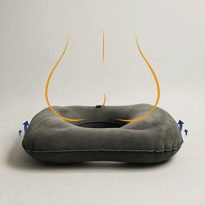 Denne puten beholder formen sin godt og gir meg god støtte på harde stoler. Enkel å blåse opp og tømme når jeg vil.