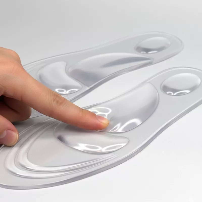 Våre silikonsåler passer sømløst inn i åpne sko uten å være merkbare. De øker komforten uten å kompromisse stilen.