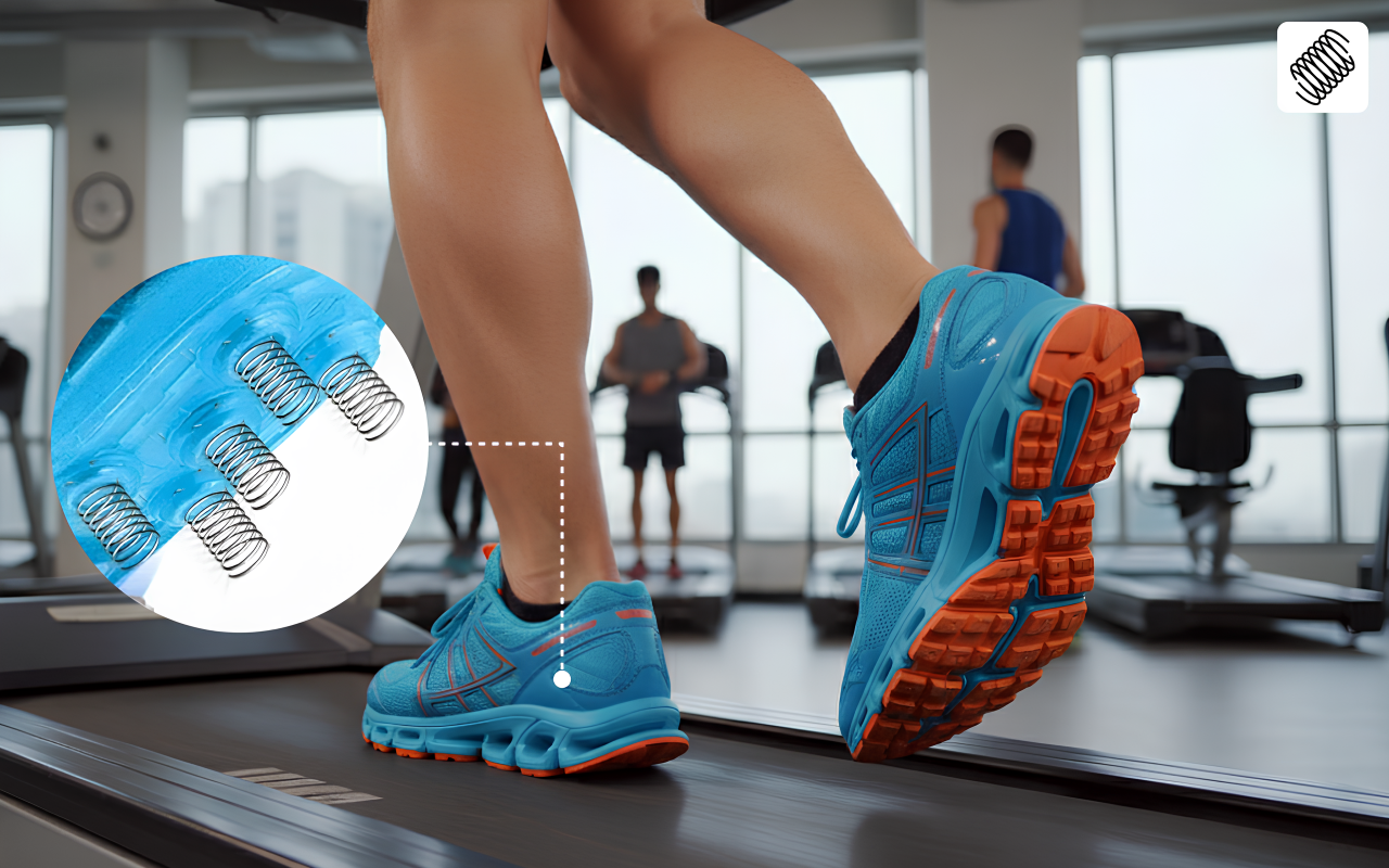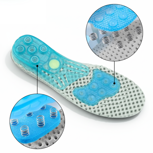 Unik fjærteknologi absorberer støt og reduserer muskelbelastning. Smerten lindres raskt, og ømme hæler og buer kommer seg fort.