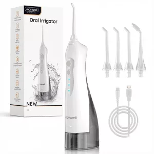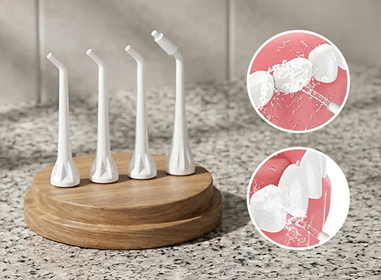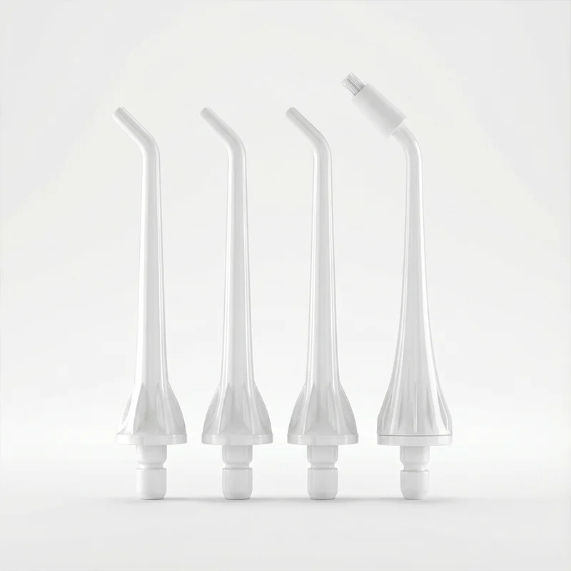 Vår irrigator inkluderer tre dyser for vanlig rengjøring og en tungskrape.
