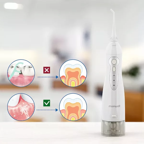 Ortorex Irrigator gjør rengjøring av tenner mer effektiv. Vanntrykket når hvert hjørne som vanlig tanntråd og børste ikke kan nå. Dette reduserer den totale mengden bakterier og plakk mellom tennene. Det kan umiddelbart gi frisk pust. Dessuten er vår munnskylling egnet for tannregulering, implantater, kroner og broer og er billigere enn tannlegebesøk.