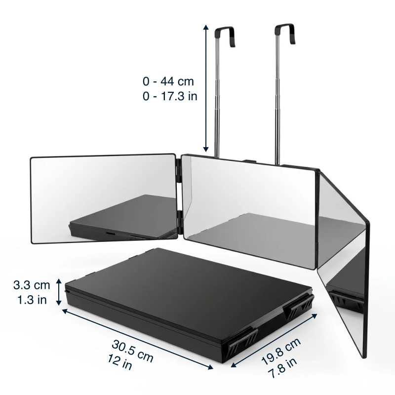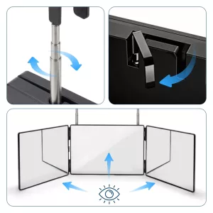 Ortorex trifold-speil løser raskt og enkelt daglige pleieproblemer. Juster høyden for full synlighet når du styler eller barberer deg. Brett det flatt så det passer i vesker og skuffer når du er på reise. Få klare speilbilder for hårklipp, sminke eller hudpleie hver eneste dag.