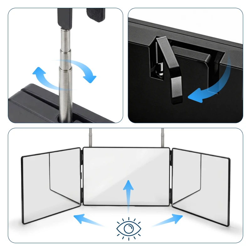 Tre paneler avslører vanskelig synlige områder enkelt hver gang. Ikke mer oversette flekker eller klønete bøying nødvendig.