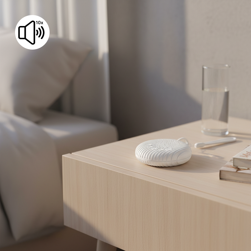 Ortorex hvit støymaskin hjelper både barn og voksne med å sovne raskt. Blokkér lett ut forstyrrelser fra naboer eller gate. Designet for reise, passer i alle vesker eller lommer. Nyt beroligende lyder og våkn opp uthvilt.
