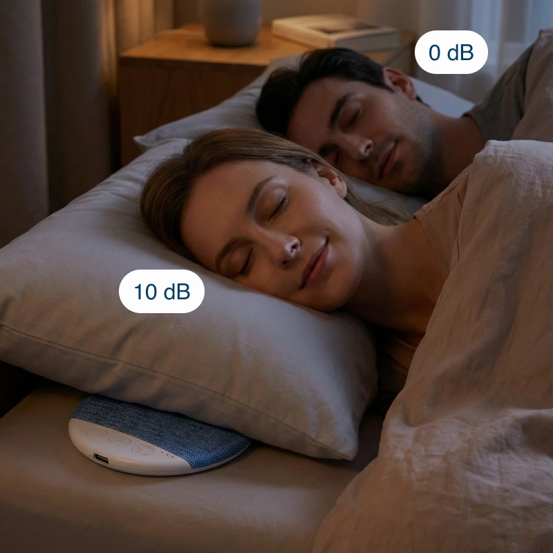 Ortorex gir rolige netter til ditt travle liv. Slapp av raskt etter lange dager og beskytt drømmene dine mot støy. Nyt beroligende naturlige lyder som gjør det lett å hvile. Den slanke formen passer perfekt på ethvert nattbord. Opplev komfort, avslapning og dypere søvn hver natt.