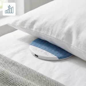 Elsker virkelig å ha havlyd på mens jeg sovner. Den er enkel å bruke og passer på min lille hylle uten å ta opp plass.