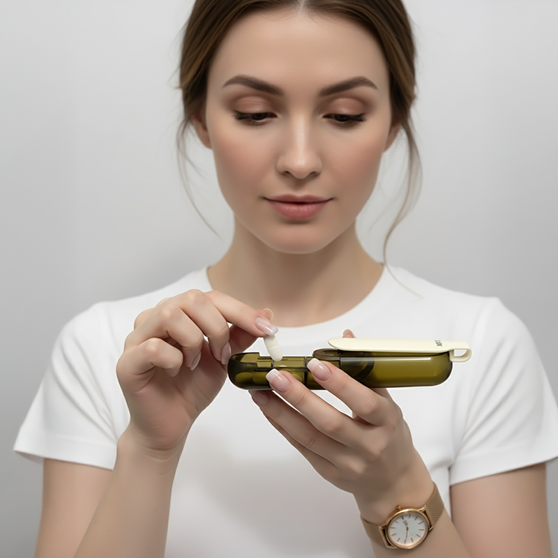 Denne lille boksen gjør morgenen min så mye enklere. Ikke mer å kjempe med fastkilte piller, bare et raskt trykk og jeg er klar. Veldig praktisk og holder alt ryddig.
