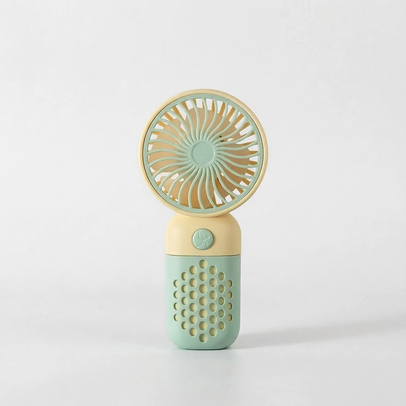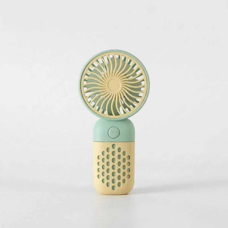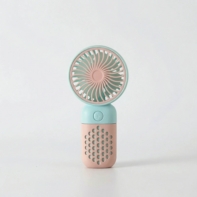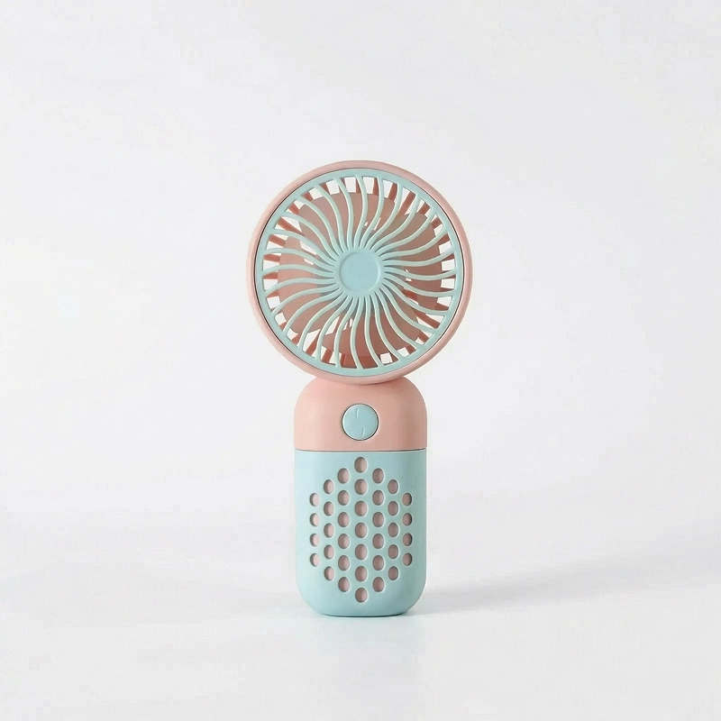 Jeg har denne lille viften på skrivebordet og i vesken. Én knapp, kraftig bris, og den sterke fargen gjør den lett å finne i ryggsekken.