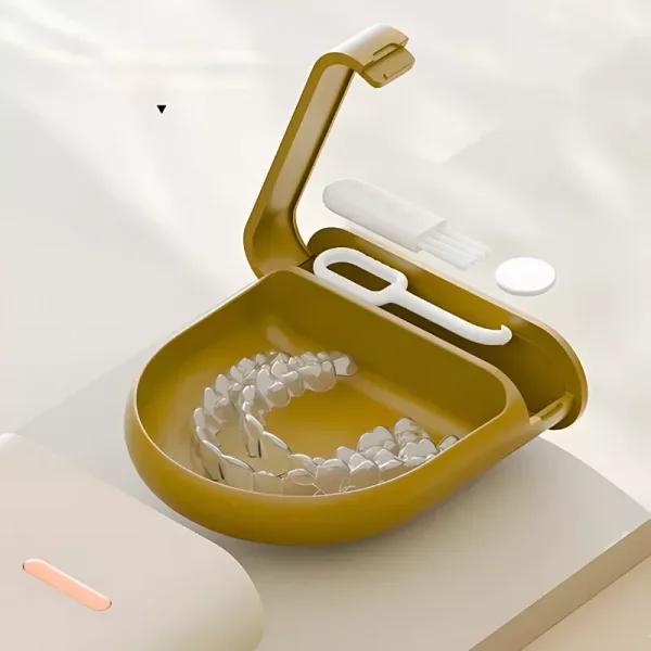 Ortorex proteseboks motstår sprekker og tåler daglig slitasje. Ikke-giftig overflate holder tannpleieartiklene trygge og hygieniske.