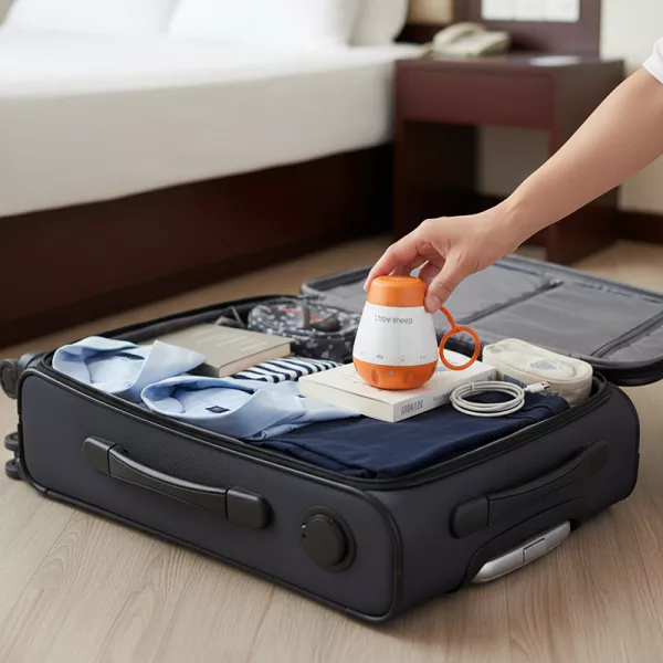 Du kan henge den ved sengen eller enkelt pakke den med deg. Den kompakte størrelsen gjør at du kan ta komfort med deg på hver ferie- eller forretningsreise.