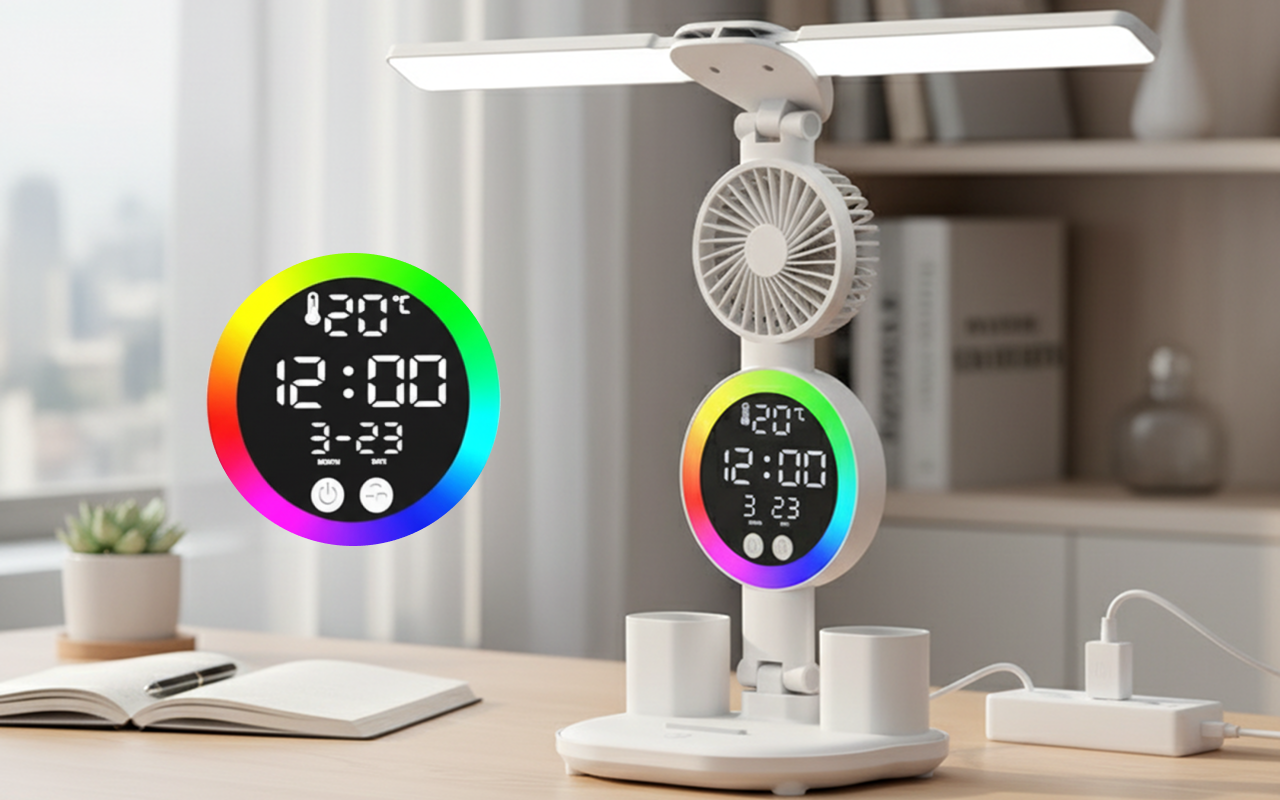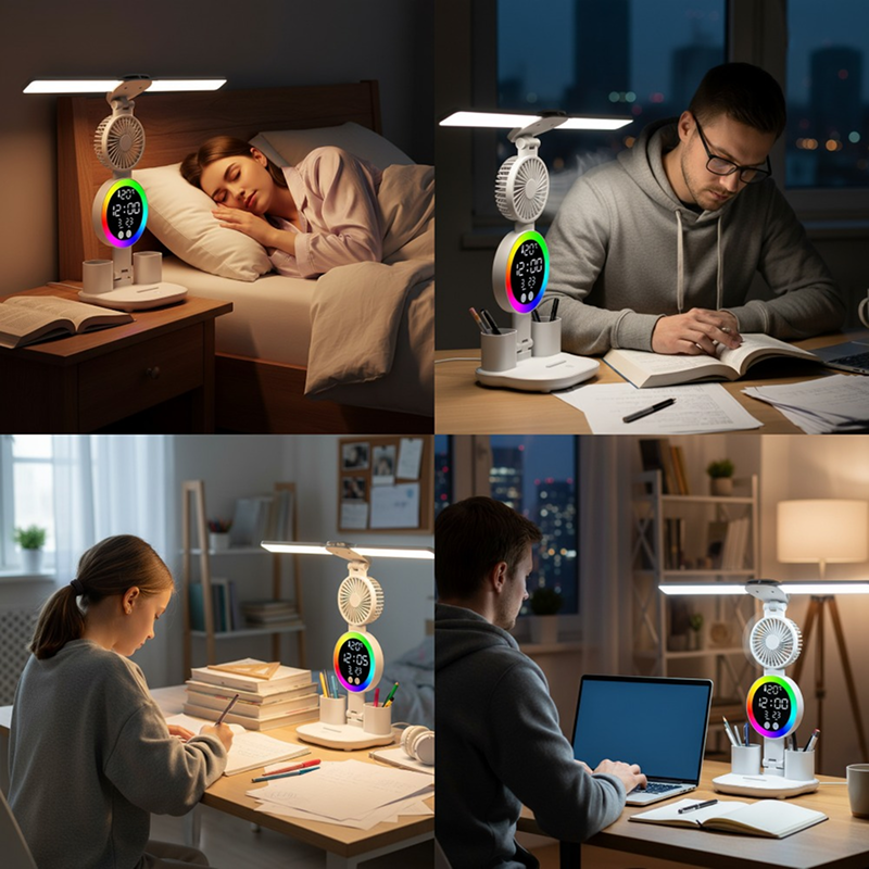 Superenkel å bruke! Klokken er stor og lyssterk, og viften fungerer stille. Kveldslesning er mye mer behagelig nå.