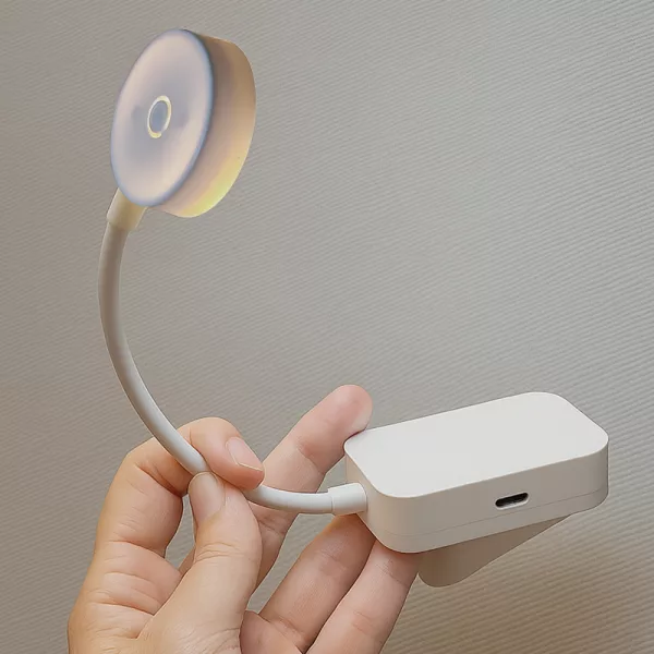 Det myke lyset fra denne lampen gjør lange lesestunder veldig behagelige. Den klipses både på boken min og på PC-skjermen.