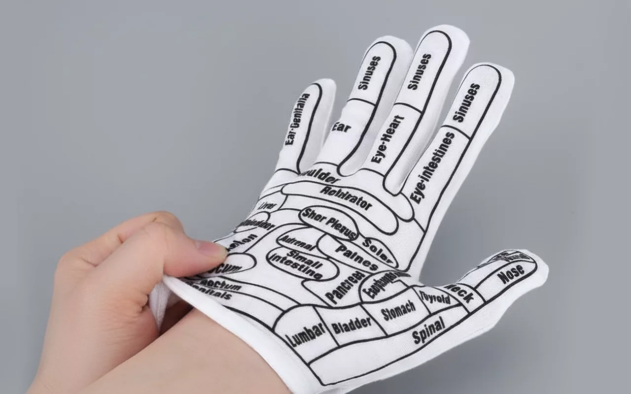 Å ta på disse hanskene etter jobb hjelper fingrene mine å slappe av så mye. Jeg liker virkelig sonene for akupressur, spesielt de for ømme tomler.