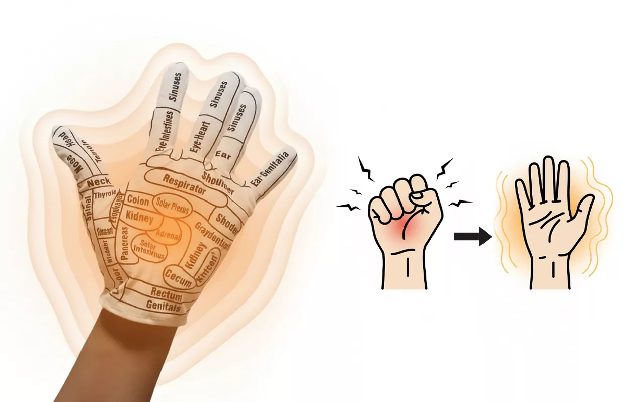 Jeg ble overrasket over hvor beroligende disse hanskene er mot stivhet om morgenen. Diagrammene gjør det superlett å trykke på de riktige punktene, selv for nybegynnere som meg.