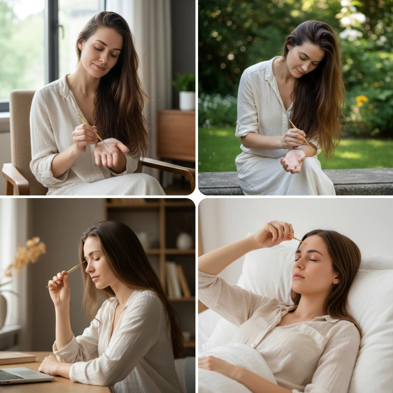 Jeg har denne i jobbvesken og bruker den mellom møter på tinningene og kjeven. Den letter merkbart spenningshodepine og hjelper meg å fokusere igjen.