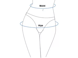 - 2. Mål med målebånd rundt den smaleste delen av midjen og den bredeste delen av hoftene.