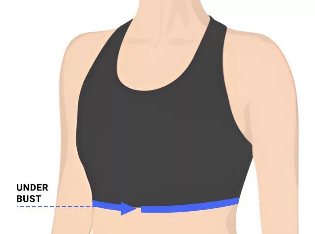 - 2. For å finne målet under bysten, surr målebåndet rundt ribbeina, rett og jevnt under bysten.