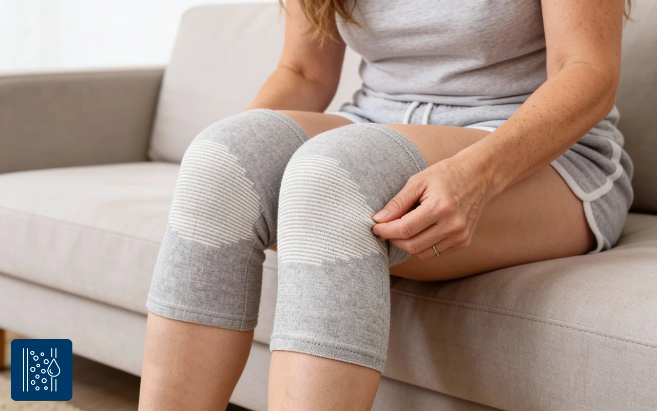 Jeg bruker de varme kompresjonsstroppene mens jeg jobber hjemmefra. Å sitte hele dagen pleide å gjøre knærne mine stive, men nå føles de støttet og låser seg ikke.