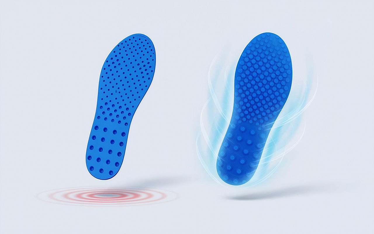 Bruker dem i arbeidsskoene mine og på treningssenteret. De små massasjeprikkene lindrer spenninger i føttene, og støtdempingen holder den gamle ankelskaden i sjakk.
