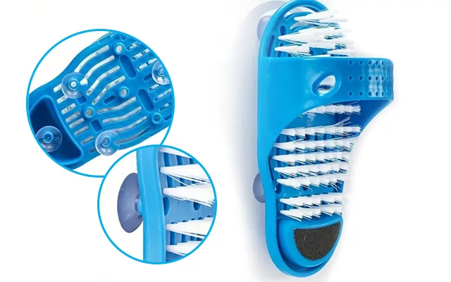 Føl deg frisk etter hvert bad. Ortorex dusj fotskrubber fjerner hard hud uten bøying eller å skli. Børstene masserer og rengjør skånsomt, slik at føttene blir myke og sunne. Pålitelige sugekopper holder sandalen sikkert på plass på ethvert dusjgulv.