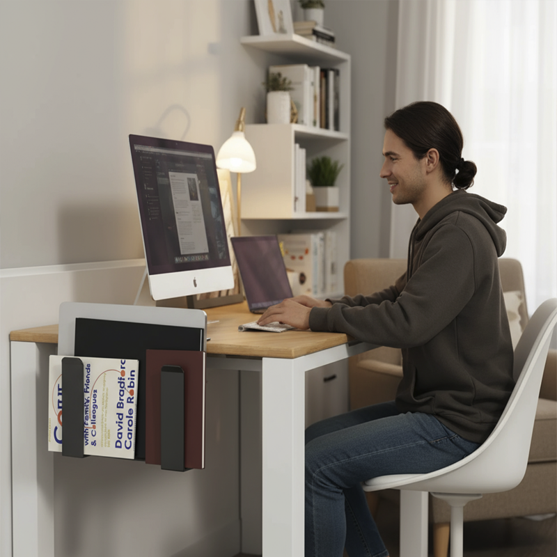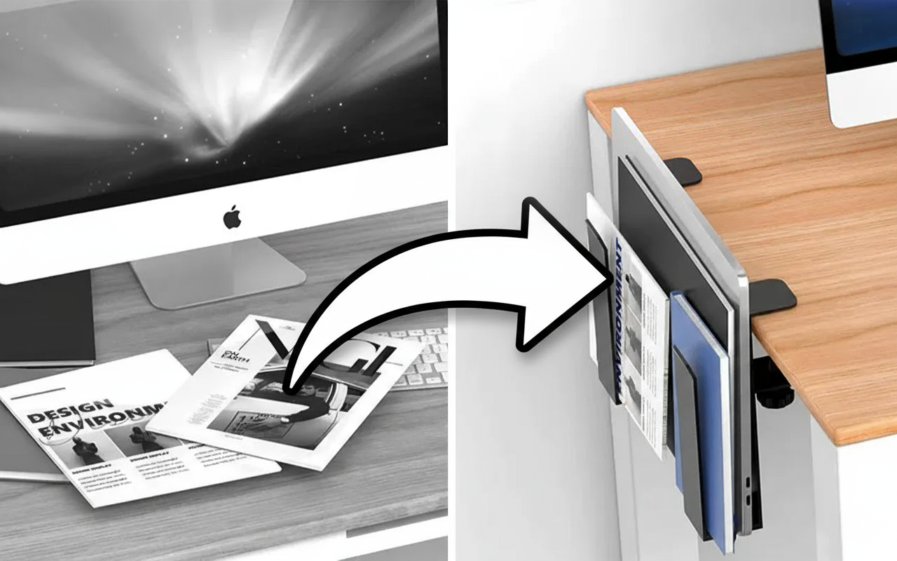 Reduser rot raskt med en smart holder ved siden av pulten din. Få mer plass til å jobbe, skrive eller tegne uten forstyrrelser.