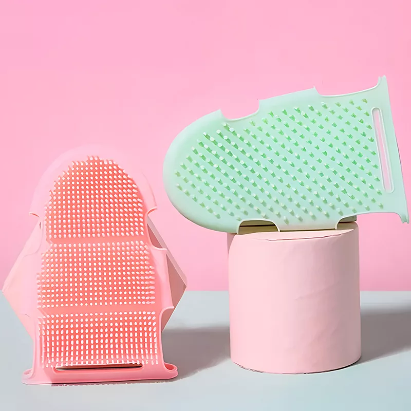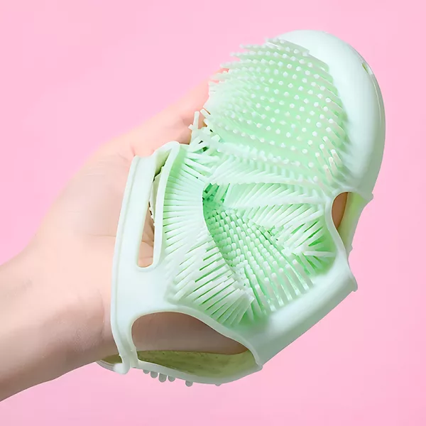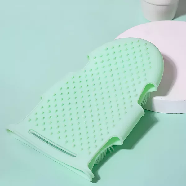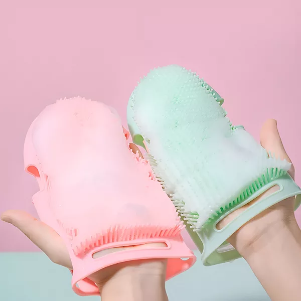 Vår silikonehanske sitter godt i hånden og holder seg på plass, selv i dusjen.