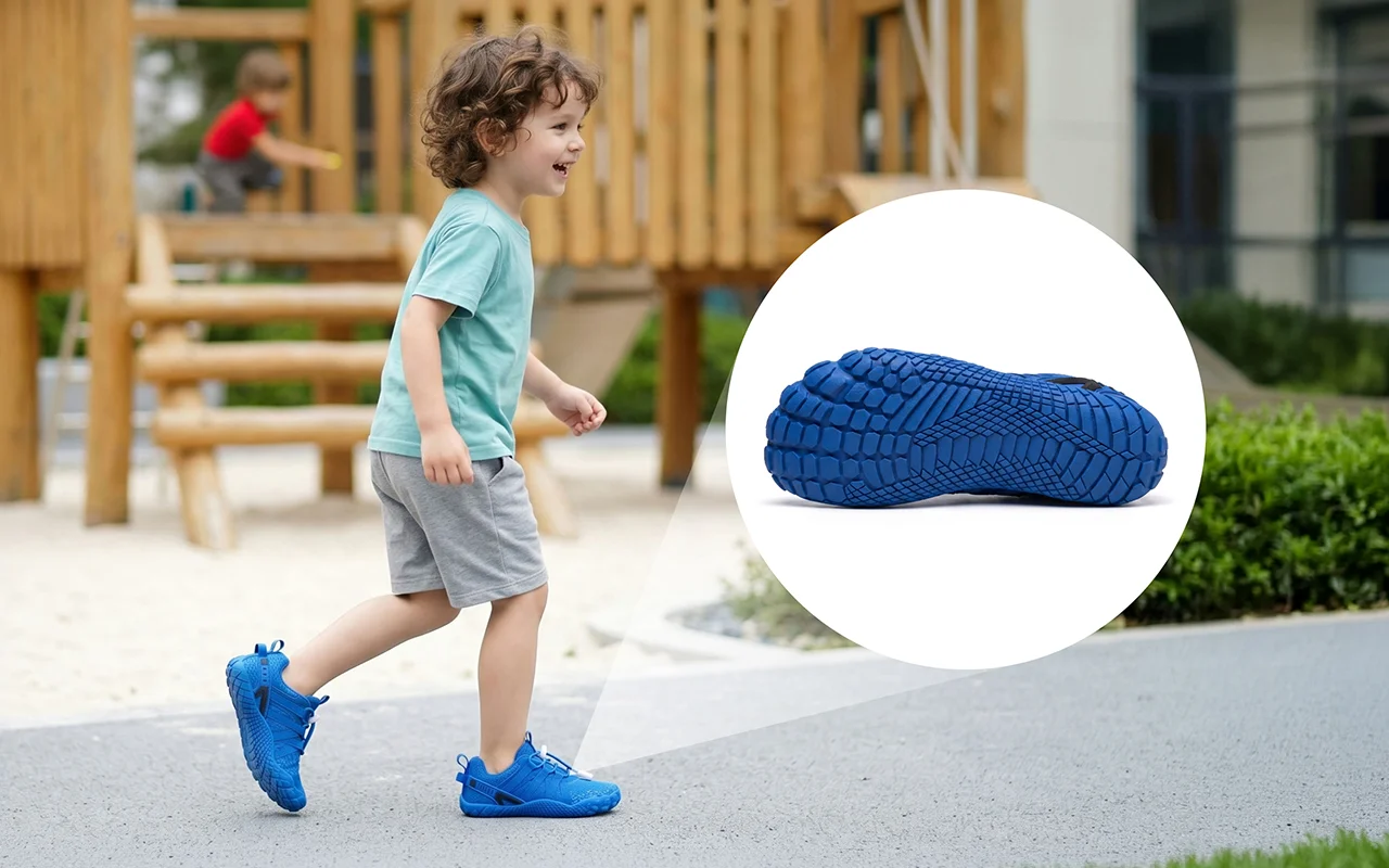 Føttene kan spre seg lett, noe som gir balanse og komfort hele dagen. Romslig plass lar voksende tær utvikle seg naturlig uten å bli klemt.