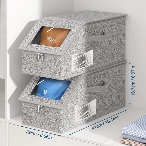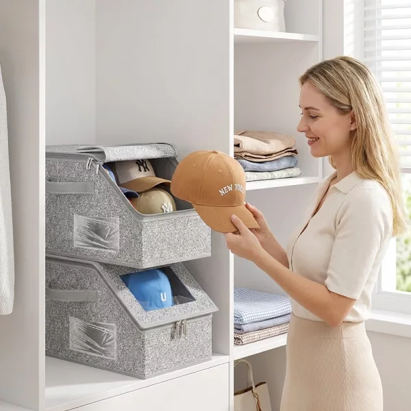 Den stablebare strukturen lar deg få plass til mer i trange skap. Utnytt hver hylle godt og hold rommene rolige.