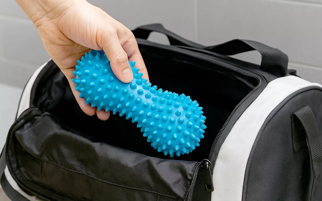 Jeg har denne piggete rullen ved sengen. Hver kveld før jeg legger meg, ruller jeg den på leggene slik at de føles avslappet og mindre ømme.
