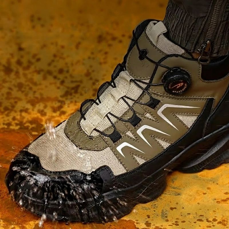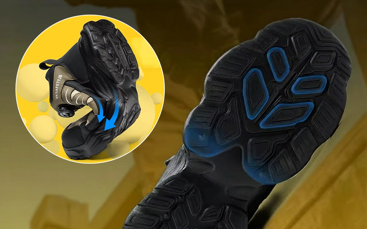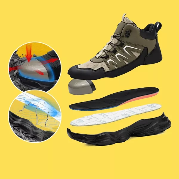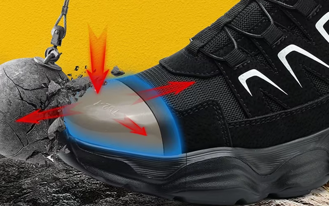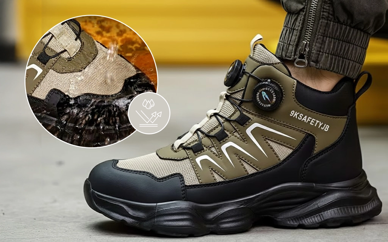 Stålarmering beskytter tærne mot fallende verktøy eller gjenstander. Spikerbeskyttende såle hindrer skarpe gjenstander fra å trenge gjennom.