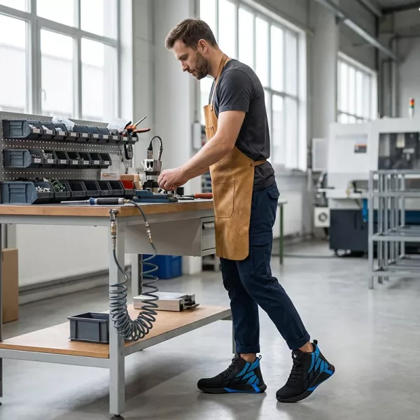 Jeg jobber på et travelt bilverksted og trengte noe robust, men ikke tunge støvler. Disse joggeskoene holder føttene mine kjølige, vernetuppene føles trygge, og sålene sitter godt på oljeflekker.