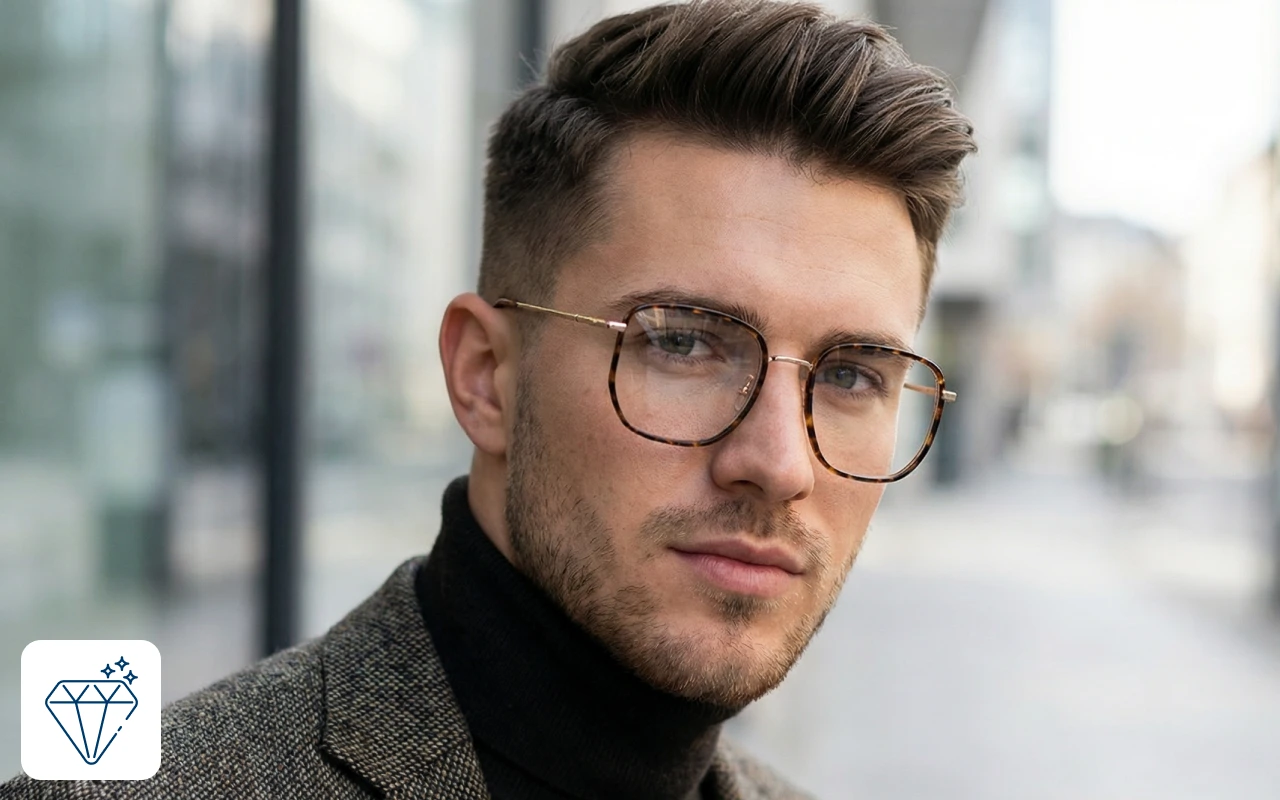 Elegante firkantede innfatninger gir antrekket et moderne preg. Både menn og kvinner kan bruke dem til enhver anledning eller i ethvert miljø.