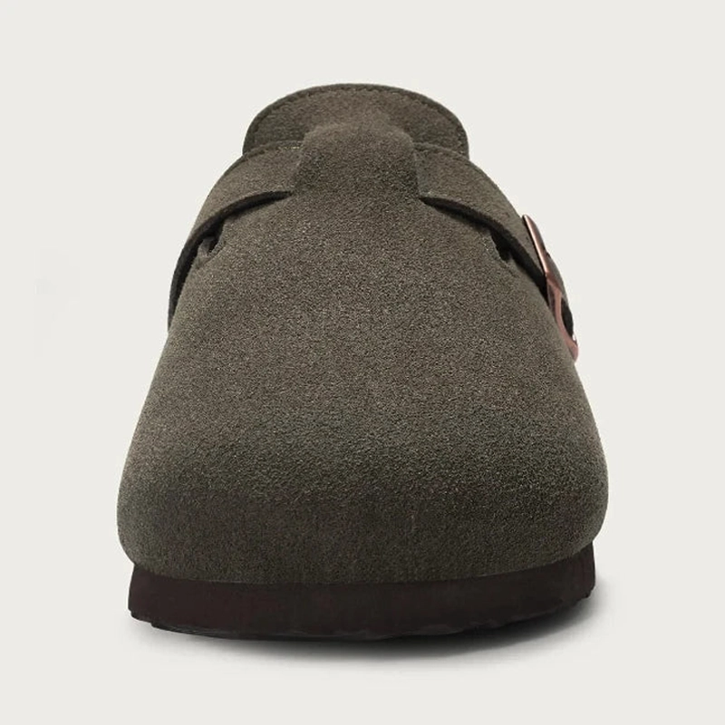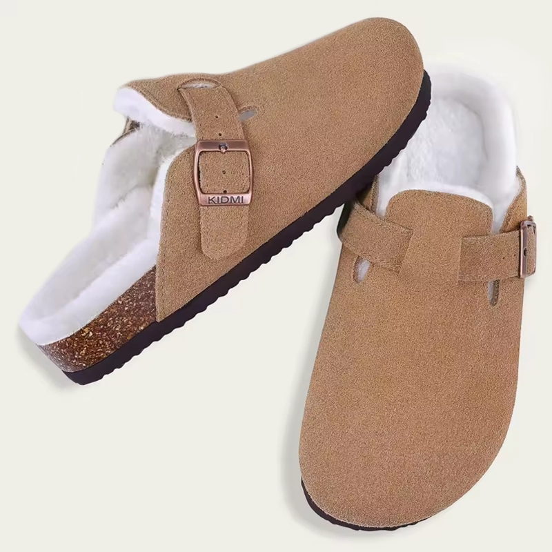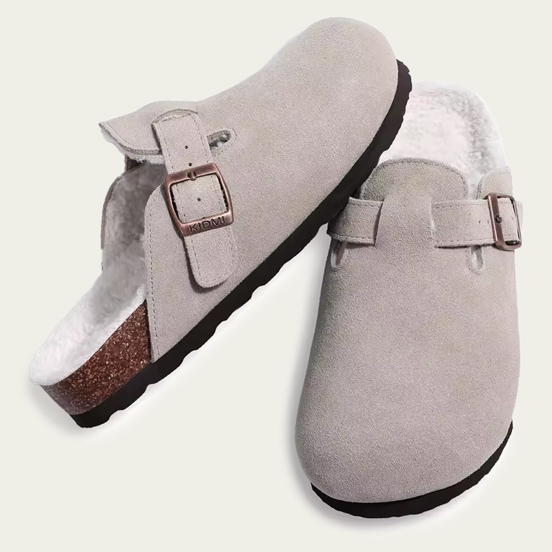 Gå inn i avslapning og føl deg lett på hvert steg. Myk semsket skinn omfavner føttene dine forsiktig uten noen trykkpunkter. Korksålen demper stegene og gjør lange turer enklere. Stil møter funksjon, så du ser flott ut uten noe styr.