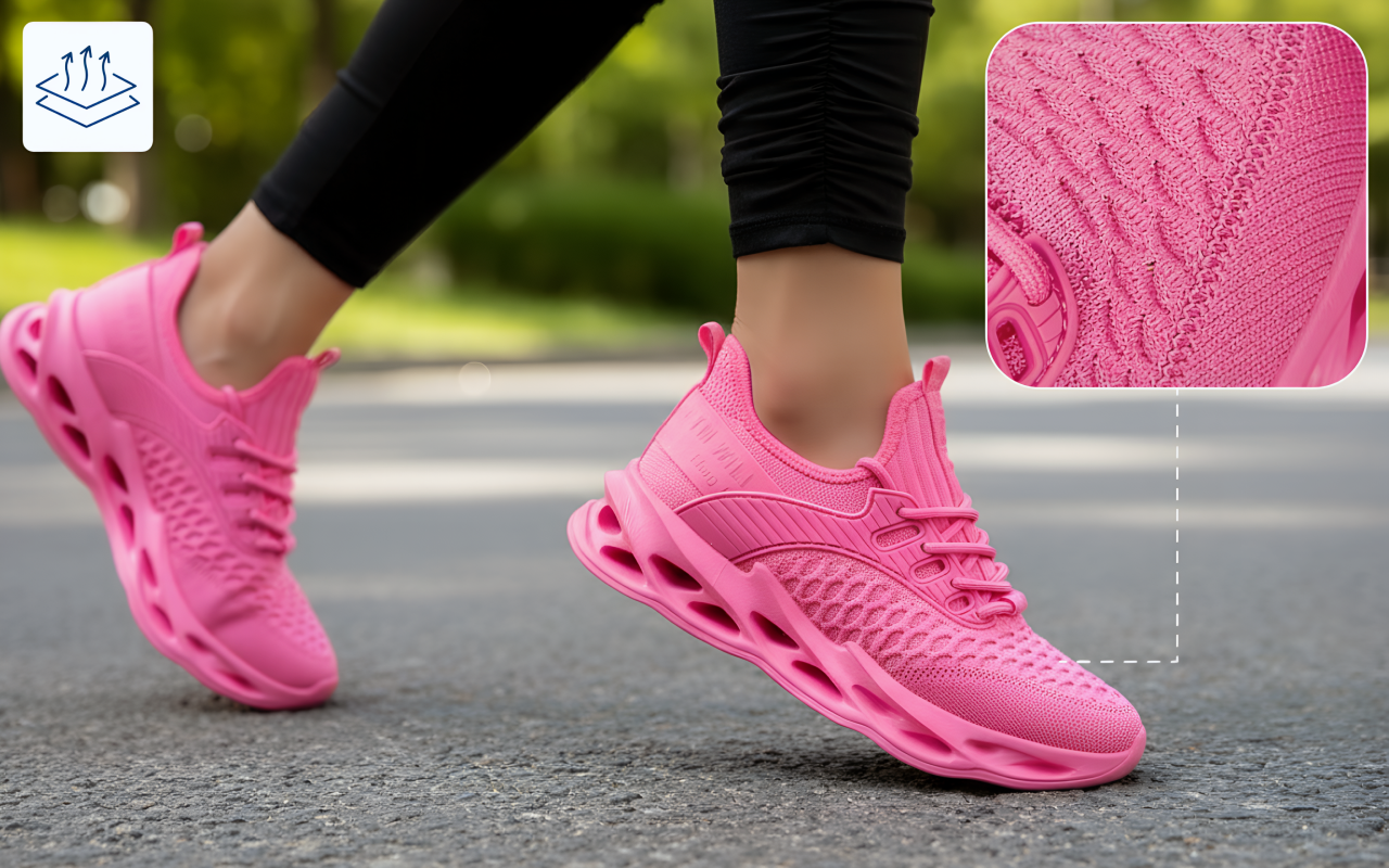 Mesh-overdelen hjelper med å holde huden tørr og frisk. Si farvel til svett ubehag på travle dager.