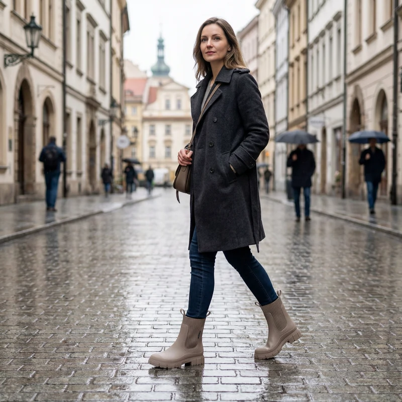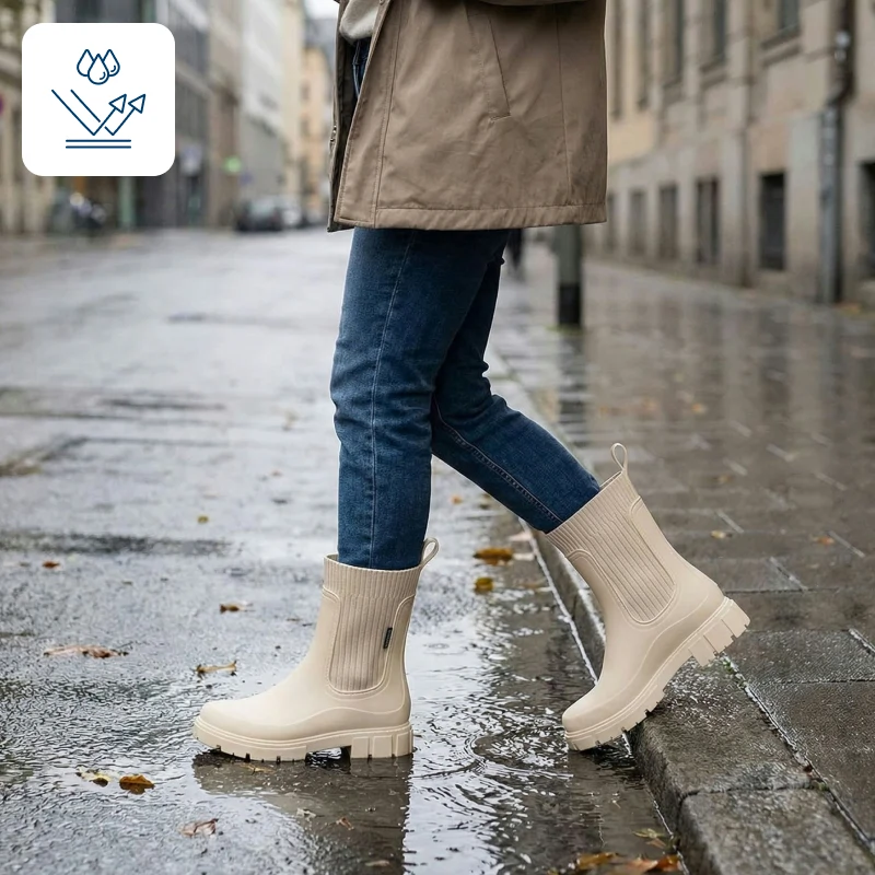 Regnet holder seg ute mens føttene dine forblir varme og friske. Gå ut i byen selv når gatene er fulle av vanndammer.