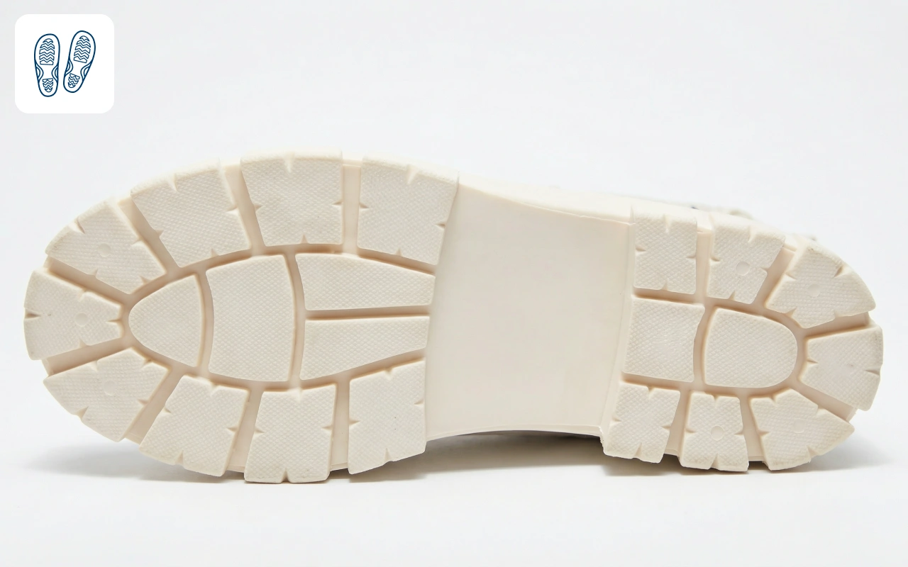 Glatt underlag er ingen utfordring for den solide sålen. Gå trygt med visshet om at hvert steg er stødig og sikkert.