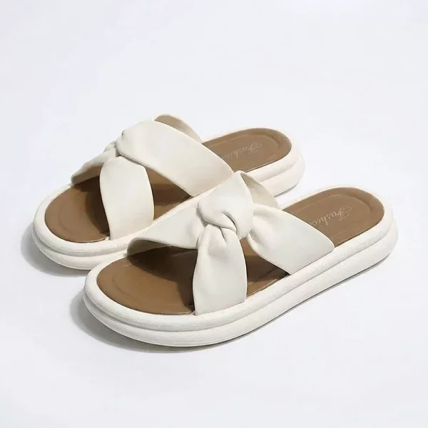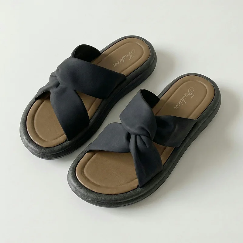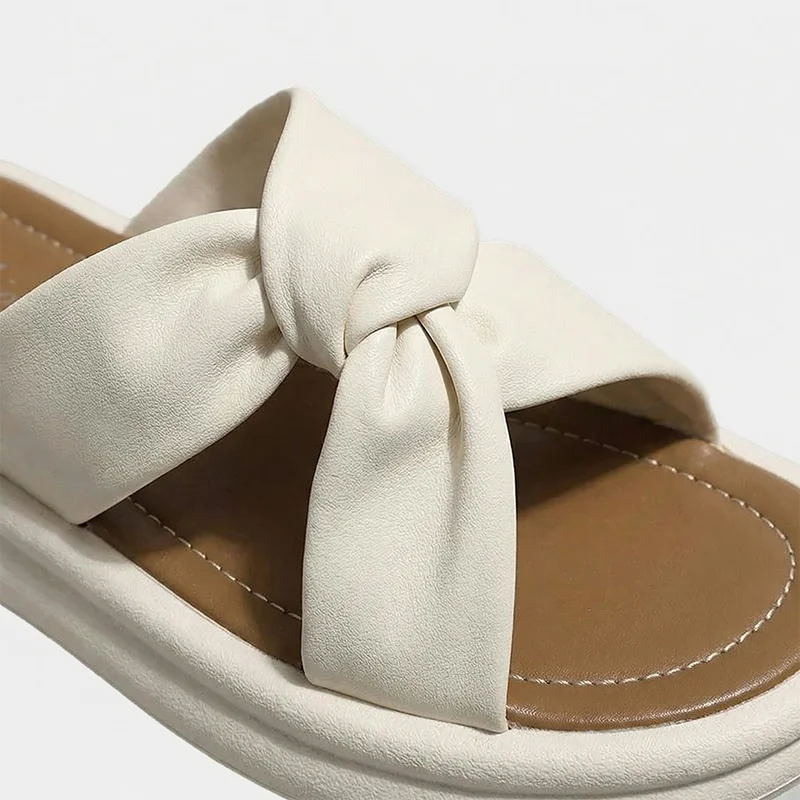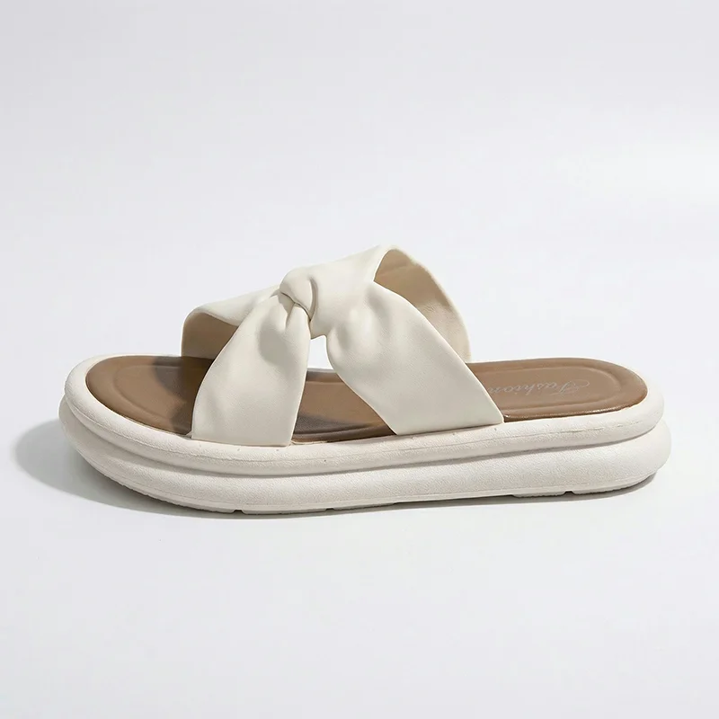 Kjøpte disse sandalene til helgeærend og strandturer. De er raske å ta på, gir god demping i hælene, og den søte knutedetaljen gjør at antrekkene føles litt mer pyntet.