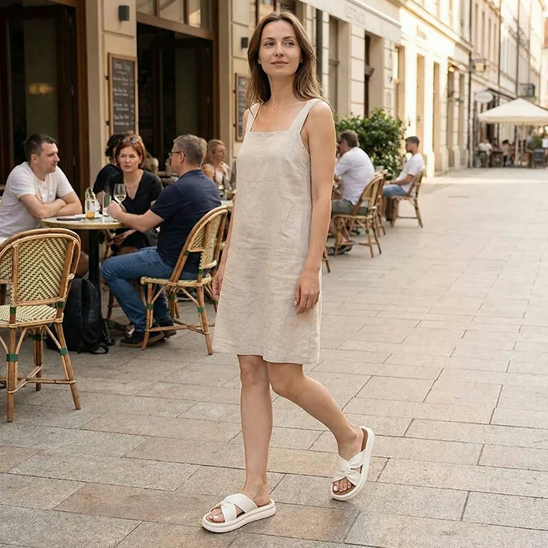 Jeg har sensitive føtter, men disse sandalene føles milde og støttende. Stroppene gnager ikke, og den knutede overdelen får selv enkle antrekk til å virke gjennomførte.