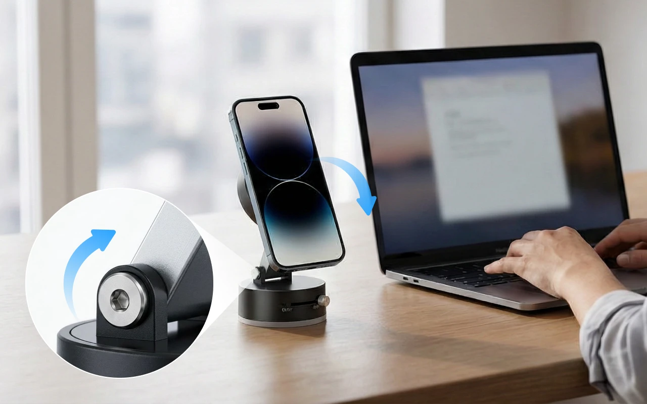 Juster vinkler enkelt for lesing, matlaging eller videosamtaler hvor som helst. Velg den perfekte visningen uten styr eller ekstra innsats.