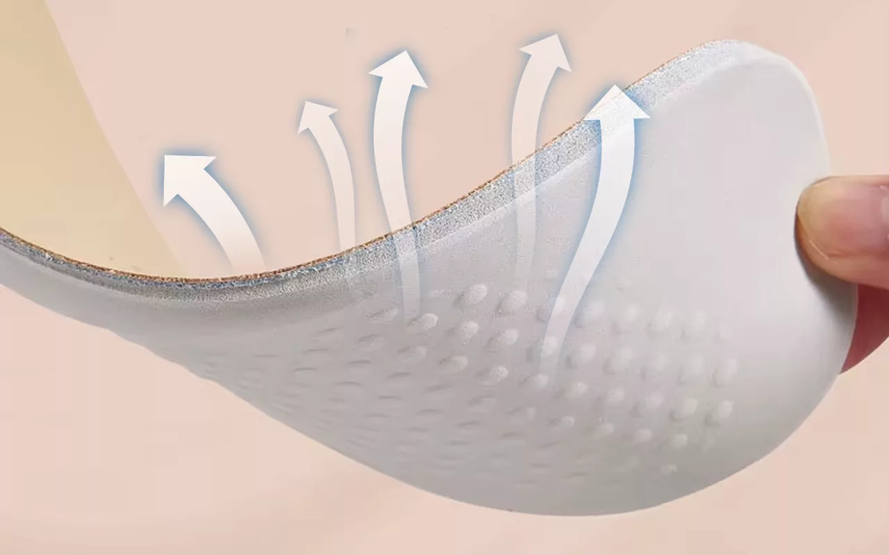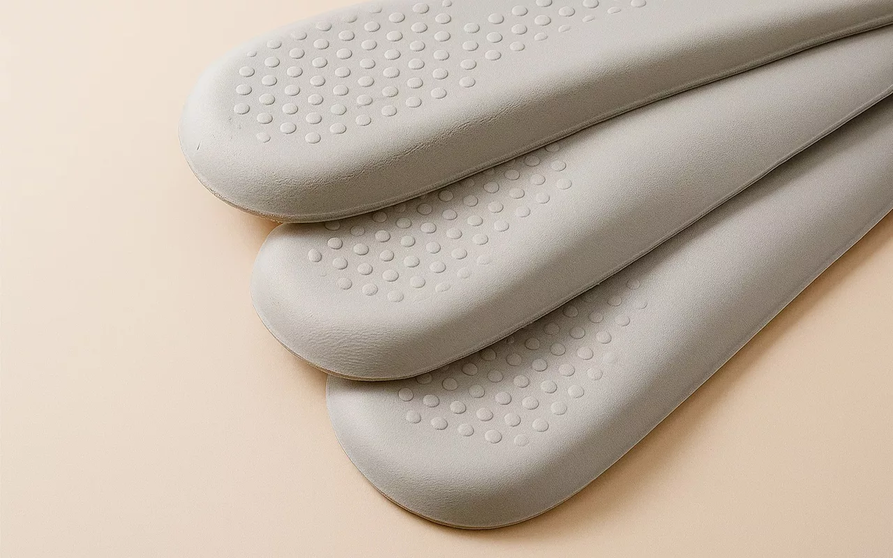 Den gripevennlige bunnen holder innlegget godt på plass i skoen. Det forhindrer uønsket forskyvning under gåing, og gir jevn komfort og støtte.