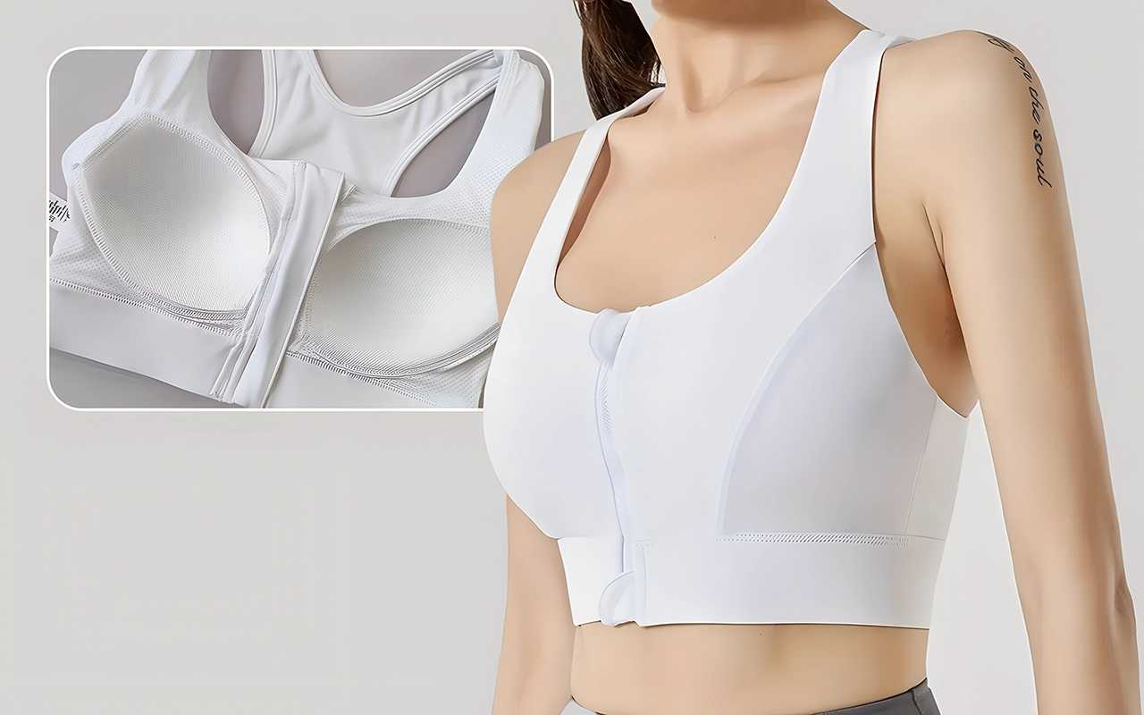 Frontåpning gjør det enkelt og stressfritt å kle på seg. Spar tid før hver økt og unngå vanskelige situasjoner.