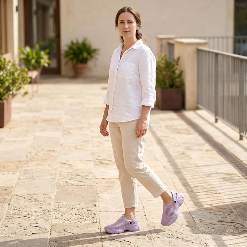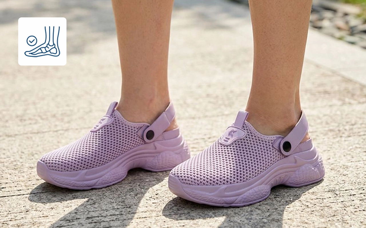 Jeg er sykepleier og bytter til disse etter vakter. Den tykke sålen reduserer trykket på hælene mine, og den luftige meshen føles fantastisk etter tunge tresko.