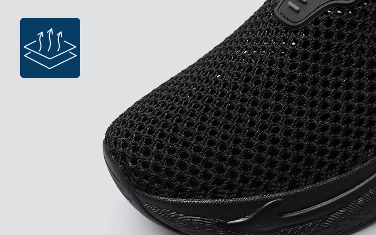 Mykt meshmateriale lar luften sirkulere fritt og holder føttene tørre. Sålene demper støt og reduserer trykk gjennom hele dagen.