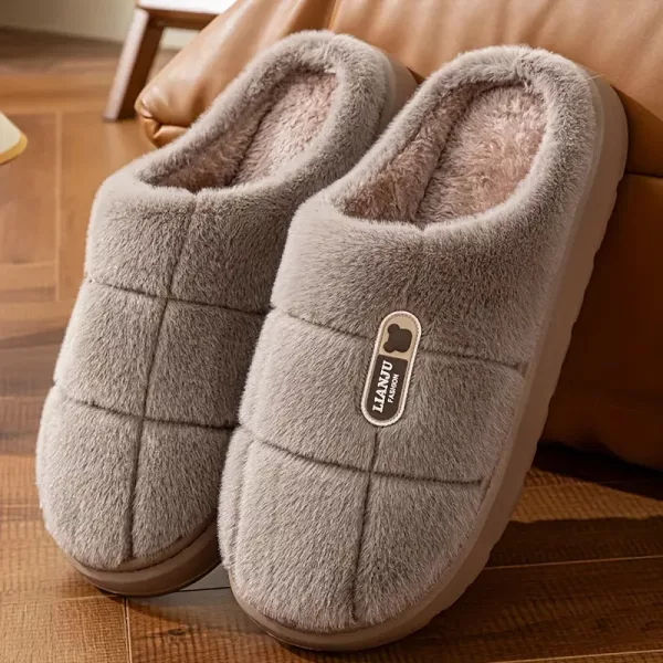 Tykk plysjfor forsiktig omslutter tærne med behagelig varme. Selv på kalde morgener holder det deg koselig og glad.