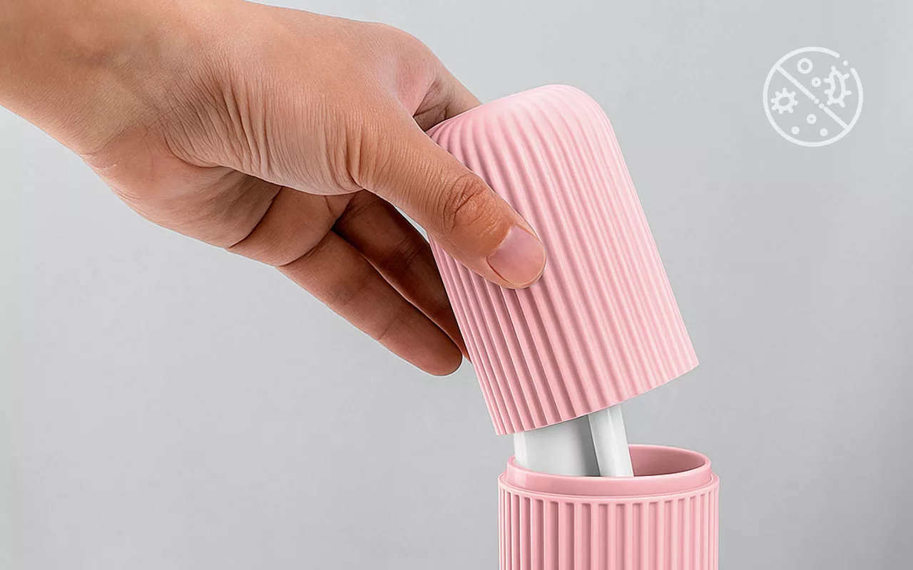 Materialet forhindrer at bakterier og smuss kommer i kontakt med tannbørsten eller tannkremen.