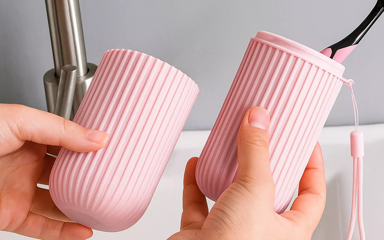 Holderen gjøres enkelt om til et praktisk krus til skylling etter tannpussen. Det gjør personlig pleie enkelt og raskt, selv når du er borte fra hjemmet.