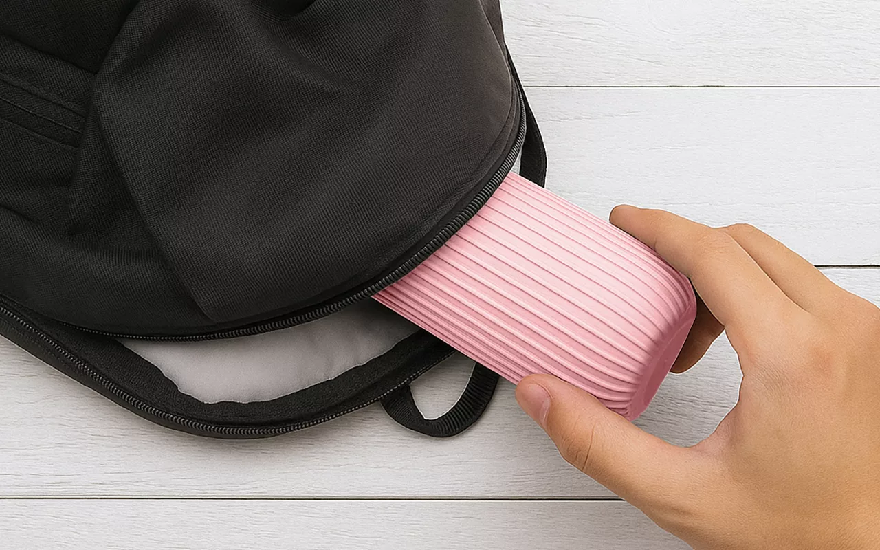 Ikke mer plasskrevende lagring i vesken. Dette etuiet passer lett i lommer eller ryggsekker for problemfri pakking.