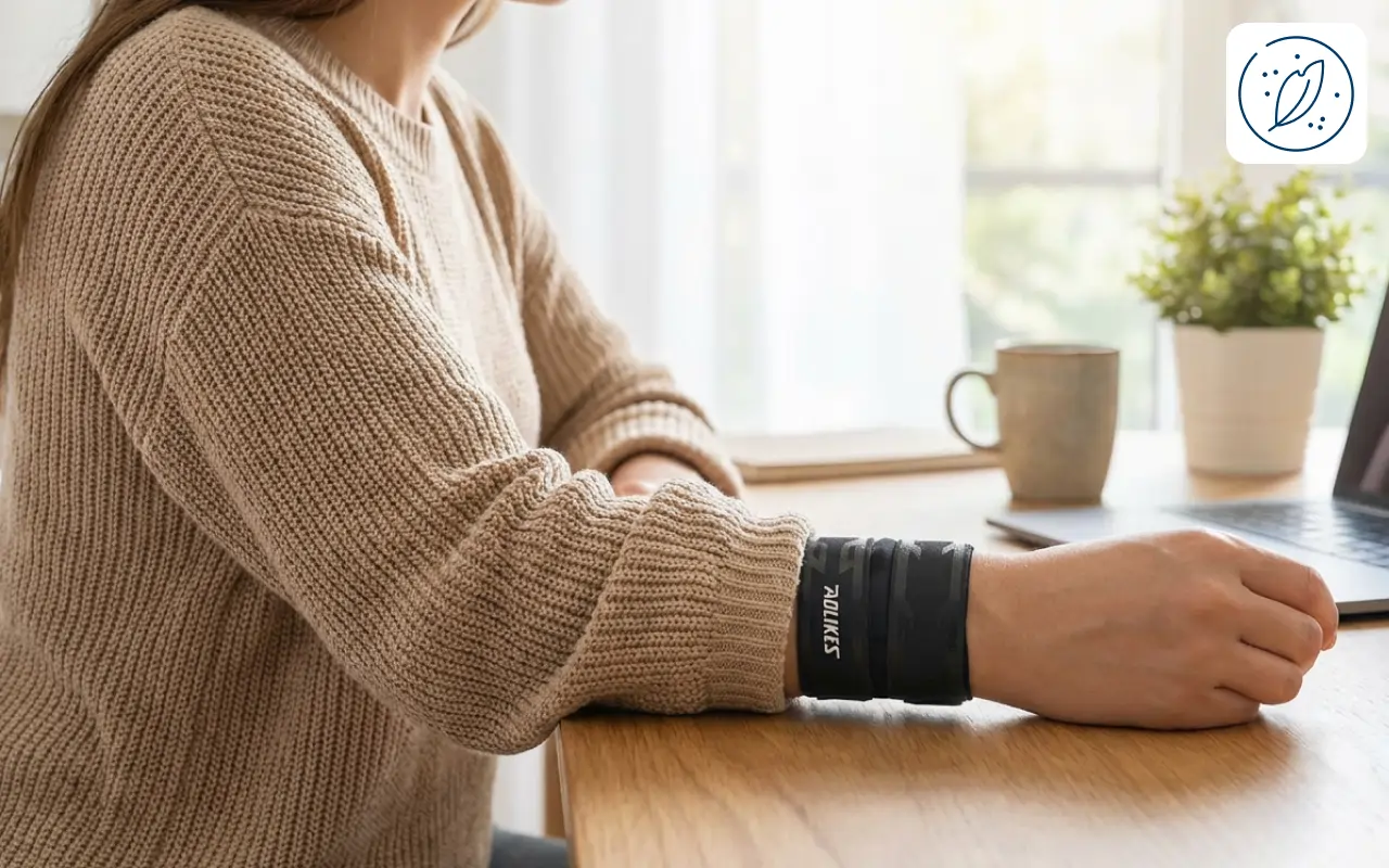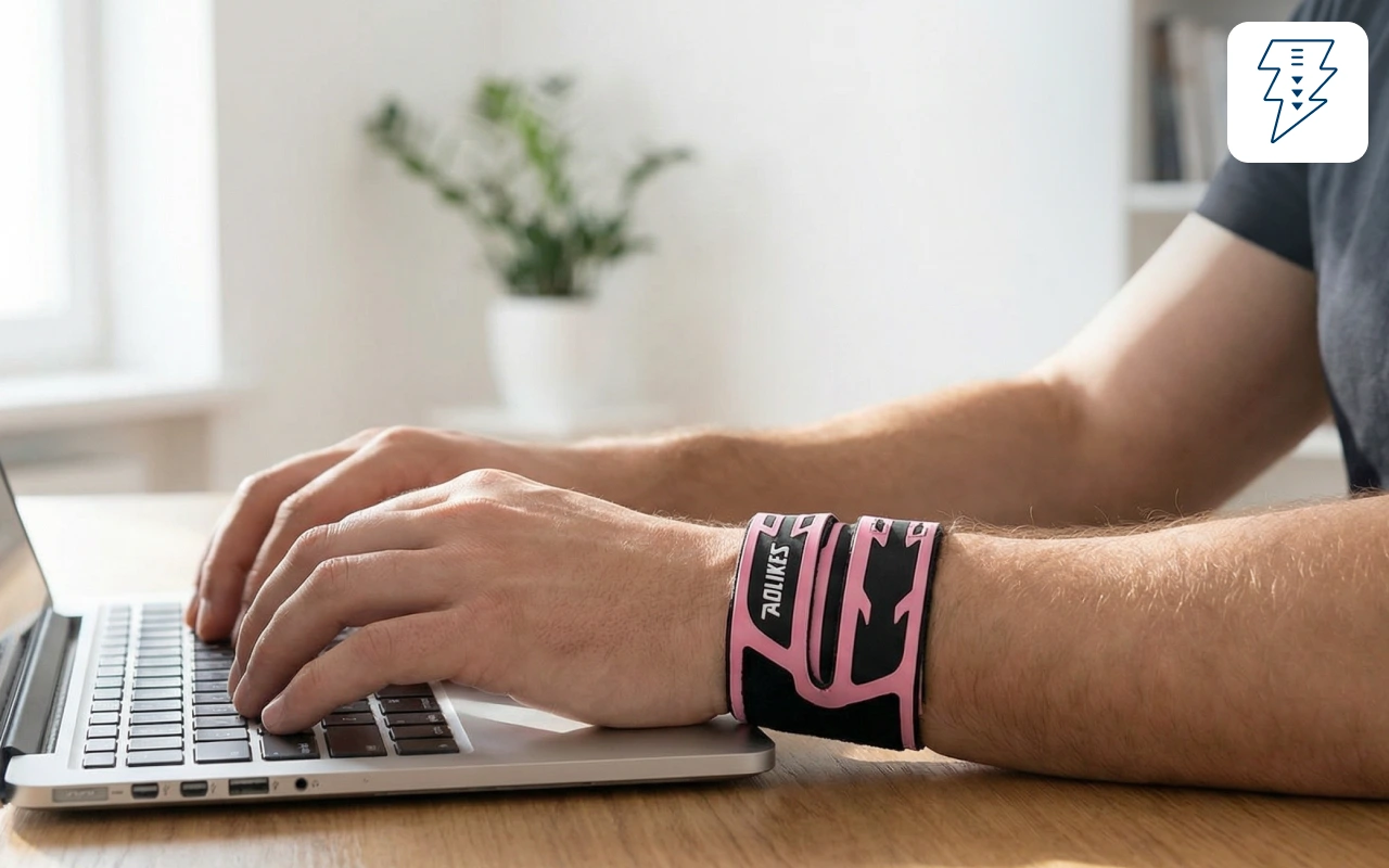 Jeg skriver hele dagen på jobb, og håndleddet mitt pleide å verke hver kveld. Denne tynne skinnen gir støtte uten å føles varm eller klumpete.