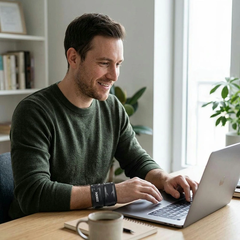 Juster enkelt stramheten for sport, arbeid eller hvile. Én størrelse passer alle håndledd sikkert uten å skli eller krølle seg.