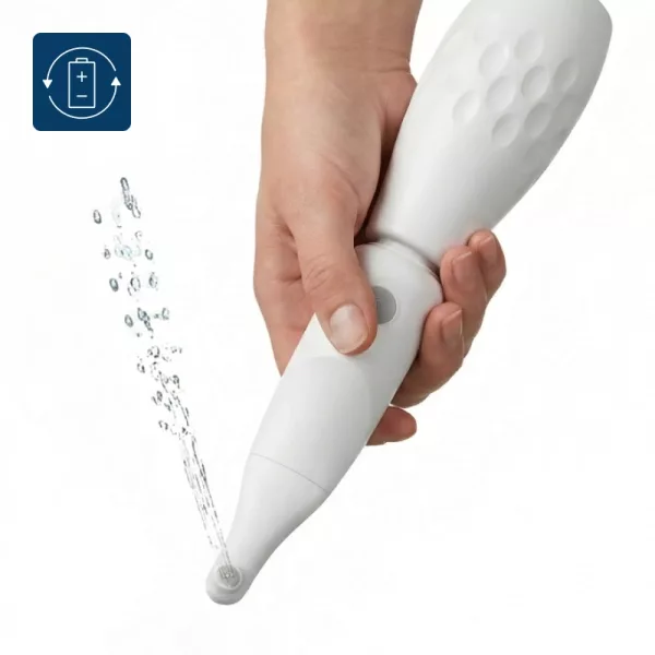 Trykk bare på knappen og velg mild eller fast stråle. Rengjøringen går raskt og behagelig uten søl eller styr.